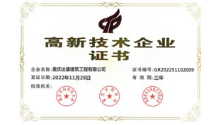 喜訊,重慶達(dá)康建筑工程有限公司順利通過重慶市科學(xué)技術(shù)局、重慶市財(cái)政局、國家稅務(wù)總局重慶市稅務(wù)局等部門的聯(lián)合評(píng)審驗(yàn)收,被正式認(rèn)定為“高新技術(shù)企業(yè)”,榮獲《高新技術(shù)企業(yè)證書》。